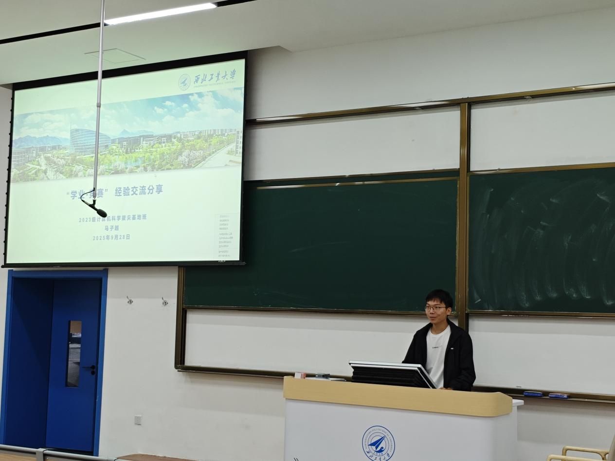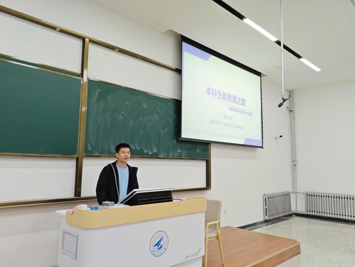 马子越围绕“学业—竞赛—保研”这一主线,对学校保研政策进行了系统梳理与解读,帮助新生对未来发展路径形成了更清晰的规划。他结合自身学习经历,分享了实用经验,特别是在面对难度较高的课程时,推荐了一些优质的课外学习资源,以辅助同学们更好地掌握知识。在竞赛方面,他详细介绍了学校重点关注的“三大赛”及其他重要赛事,为同学们选择适合的竞赛方向提供了参考,并分享了个人在参赛过程中的成长体悟与心得感悟。