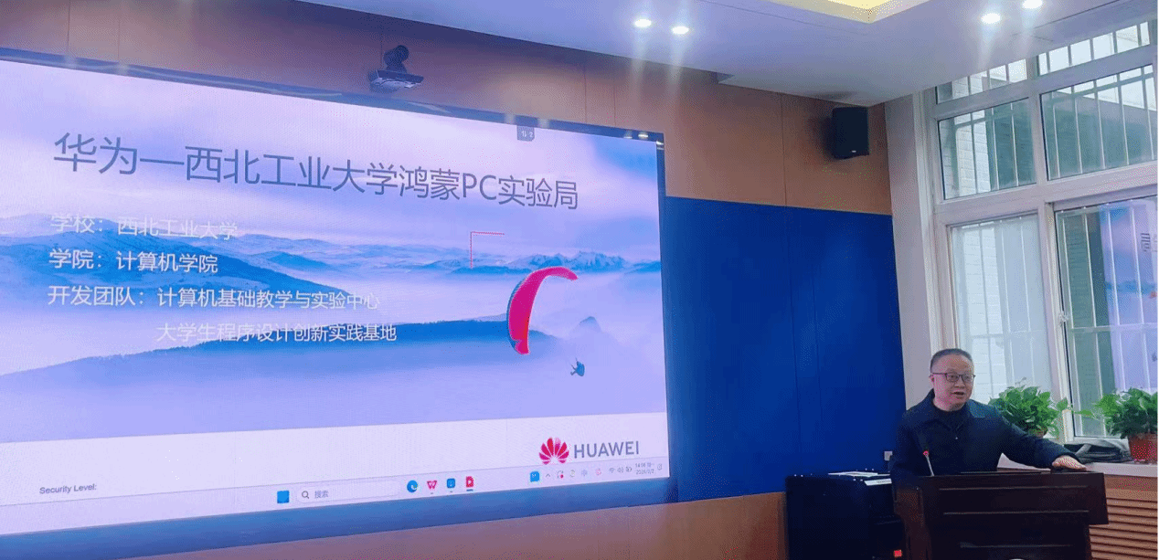 鸿蒙PC实验局作为华为与bwin必赢2024年共同签约成立的合作项目,是西工大发挥国防特色学科优势、探索国产化计算机教学与工业软件研发的关键平台。会上,姜学锋详细介绍了实验局前期建设成果,双方共建了鸿蒙PC教学平台,不仅将鸿蒙技术融入计算机基础、程序设计、软件技术等22门核心课程,还组建了跨航空、自动化、计算机等多学院的鸿蒙PC开发者队伍,从大一阶段开始定向培养鸿蒙人才,打造了从课程教学到实践应用的人才培养闭环。在技术研发与产品落地方面,西工大展现出亮眼的创新成果。