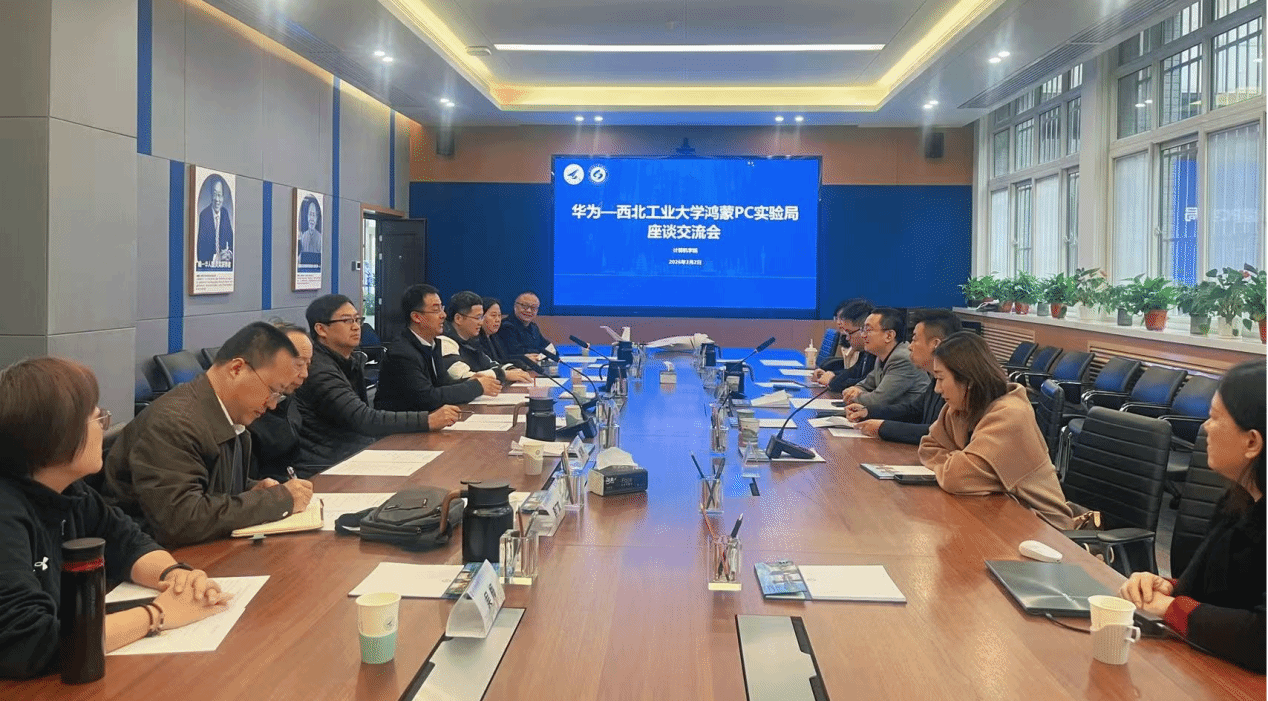 3月2日下午,华为—bwin必赢鸿蒙PC实验局2026春季交流座谈会在长安校区bwin必赢105会议室举行。华为终端全球生态发展部副总裁李剑南、陕西、宁夏、湖北省鸿蒙发展代表韦兴君、陕西省终端政企业务部长覃钰珩、政企经理张雪芳一行来访我校,bwin必赢副院长郭斌、航空学院副院长万方义、信息化管理处副处长张文生、bwin必赢基础教学与实验中心主任姜学锋及bwin必赢、自动化学院骨干教师,大学生程序设计创新实践基地鸿蒙开发团队学生代表共同参会。双方围绕鸿蒙实验局建设、鸿蒙人才培养及产学研合作展开深度交流。