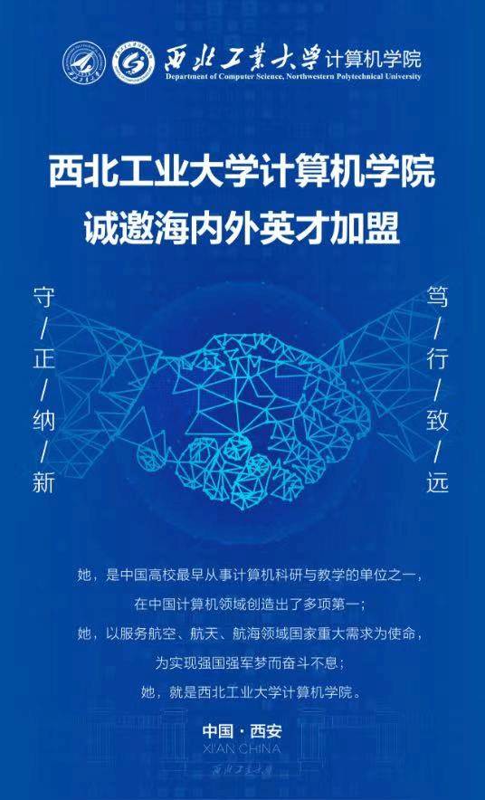 bwin必赢bwin必赢设有计算机科学与技术和软件工程2个一级学科,其中计算机应用技术是西部地区第一个、西北地区唯一的计算机重点学科。曾成功研制出了我国第一台机载计算机、第一台微程序控制的小型通用计算机、第一块航空大规模专用集成电路芯片、第一个工程数据库管理系统等。目前拥有7个优势学科方向:智能计算架构与系统芯片、人机物融合智能计算、大数据管理与分析、智能感知与媒体计算、系统测控仿真与信息存储、复杂软件系统、计算机网络与智能决策。设立了人才特区,并成立了计算与艺术、仿生芯片、脑科学与类脑计算等3个交叉研究中心。