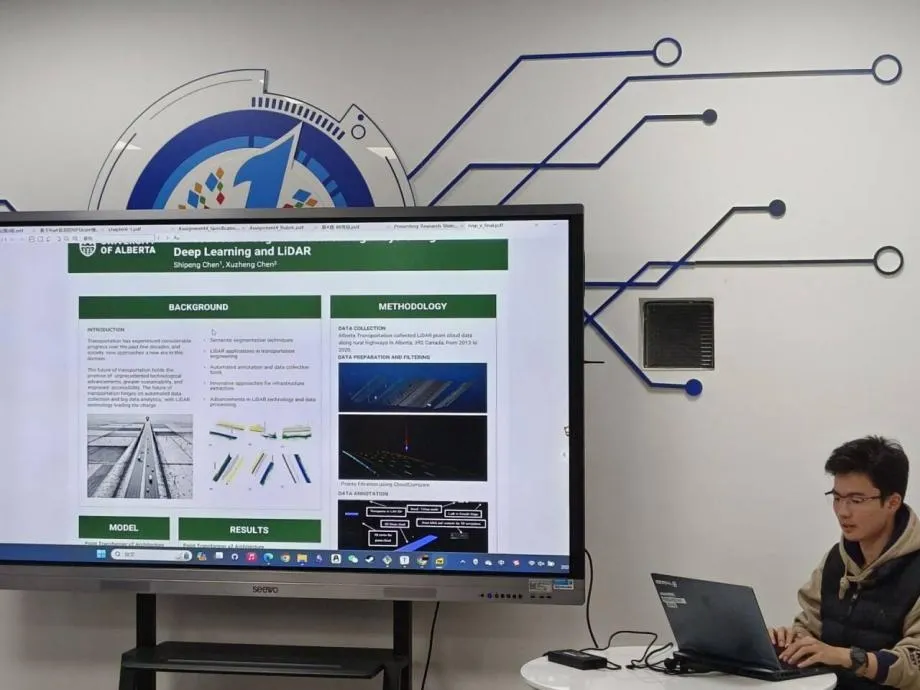 Selected by the China Scholarship Council (CSC), Chen Shipeng went to the University of Alberta in Canada for a research internship from July 7 to October 7, 2024. He first shared his experience of the academic visit to the University of Alberta, and introduced his insights from the perspectives of application preparation and academic life based on his personal experience. Finally, he presented the research topic he worked on during the internship: LiDAR Point Cloud Image Understanding – 3D Point Cloud Images Captured on Highways.